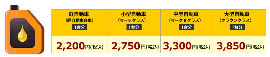 ※ ディーゼル車の料金に関しましては、店舗までお問い合わせください。